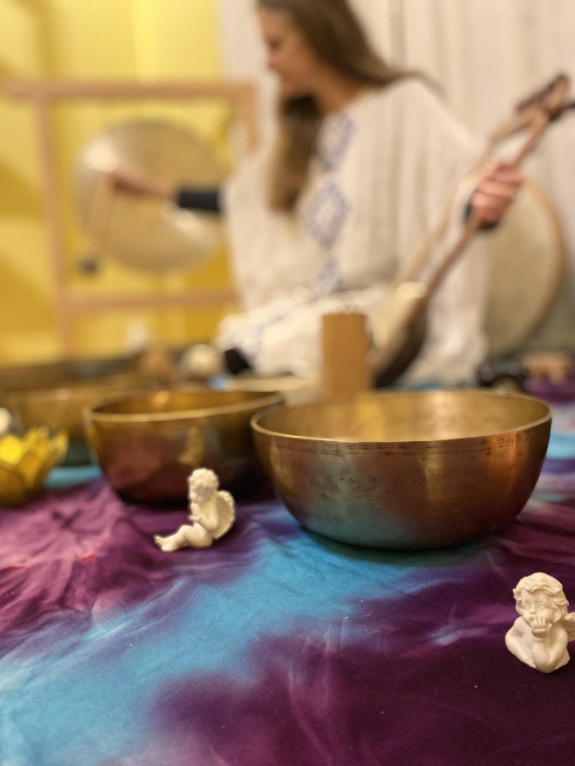 Die archaischen Klänge von Klangschalen, Gong, Regenmacher, Sansula, Flöten, diversen Rasseln, Trommel und mein intuitiver Gesang hüllen Dich liebevoll und sanft ein und führen Dich in eine besondere Tiefenentspannung.